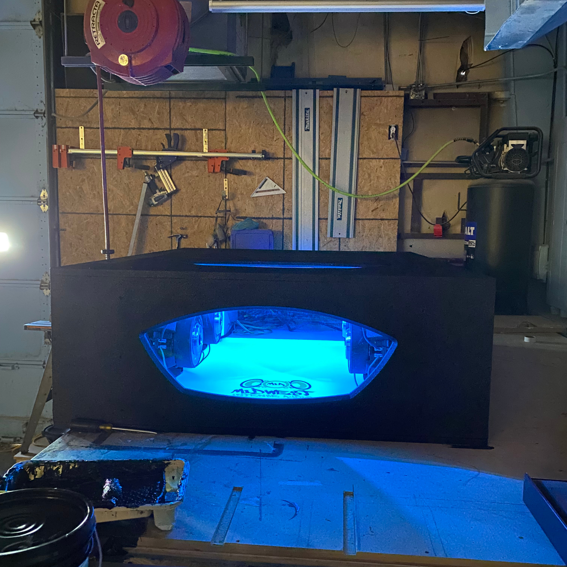 Midwest Intense Audio builds boxes from start to finish no matter the vehicle. The wood boxes are usually finished either in carpet or custom upholstered to match an existing interior or finished in a distinctive way to set the custom enclosure apart.
