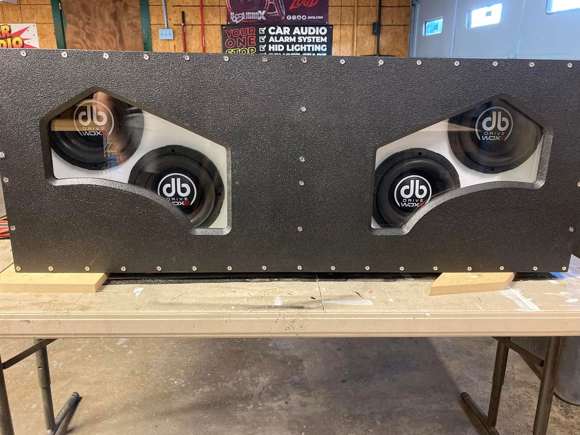 Midwest Intense Audio builds boxes from start to finish no matter the vehicle. The wood boxes are usually finished either in carpet or custom upholstered to match an existing interior or finished in a distinctive way to set the custom enclosure apart.